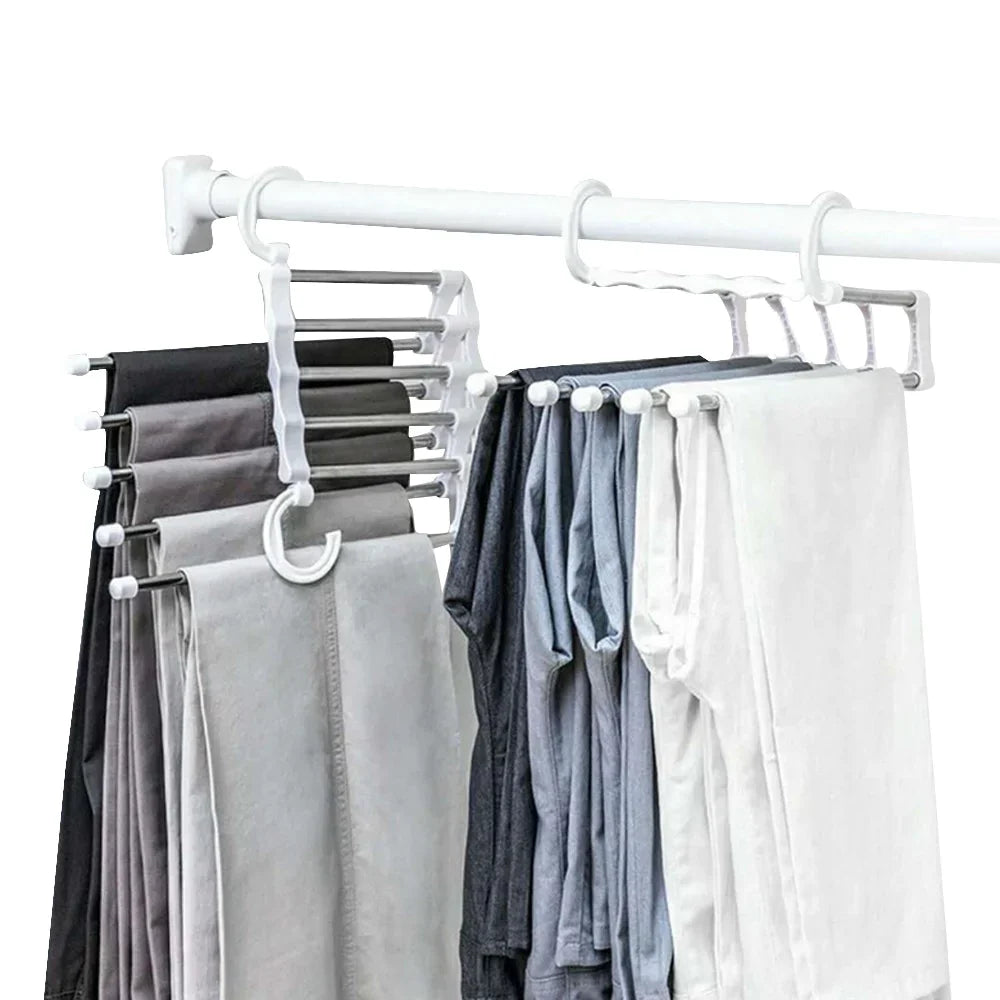 Chega de ficar com o guarda roupa todo bagunçado e com roupas amaçadas, o Cabide Magia Retrátil Multifuncional - 5 em 1 é a solução perfeita para o seu armário!