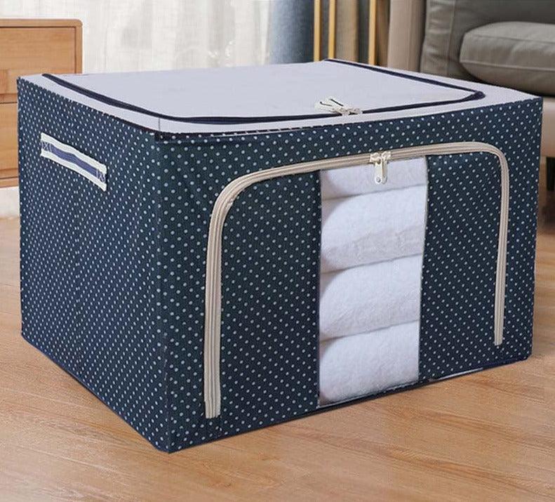Uma caixa dobrável feita de tecido Oxford impermeável, muito leve e resistente, para que você possa carregá-la e limpá-la facilmente sem danificá-la.