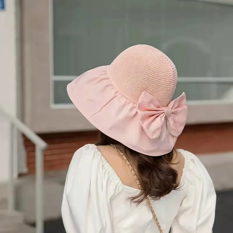 O chapéu não só oferece proteção solar e estilo incomparável, mas também vem com um detalhe funcional: um laço que se transforma em uma prática bolsa.