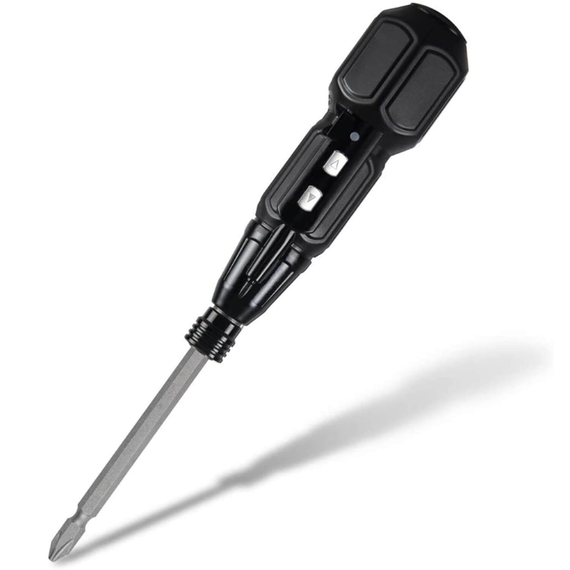 O motor elétrico potente de 360 rpm proporciona rapidez e eficiência, enquanto o ímã na ponta da chave garante a segurança dos parafusos.