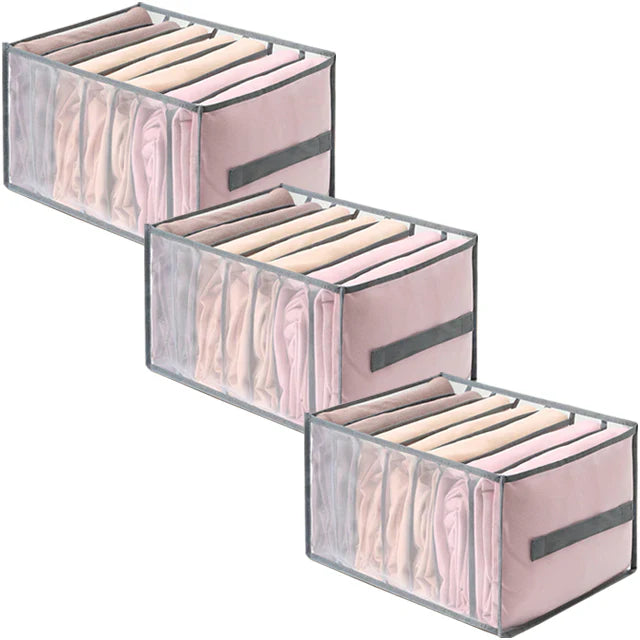Esta Colmeia Organizadora de Roupas - SmartCloset permite que você dobre suas roupas de maneira uniforme e organizada, proporcionando uma maximização eficiente do espaço disponível.