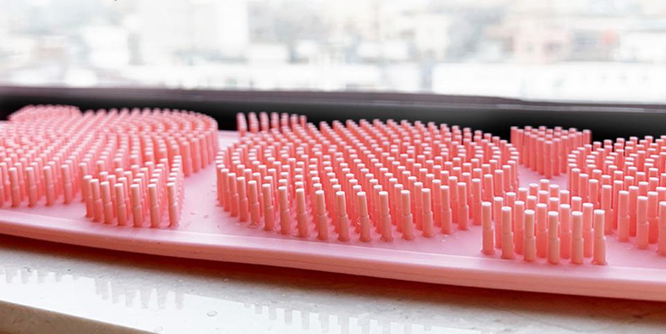 Com seu design dupla face, você pode lavar e massagear as áreas de difícil alcance, de forma fácil e eficaz. Seca rapidamente, eliminando a produção de bactérias.