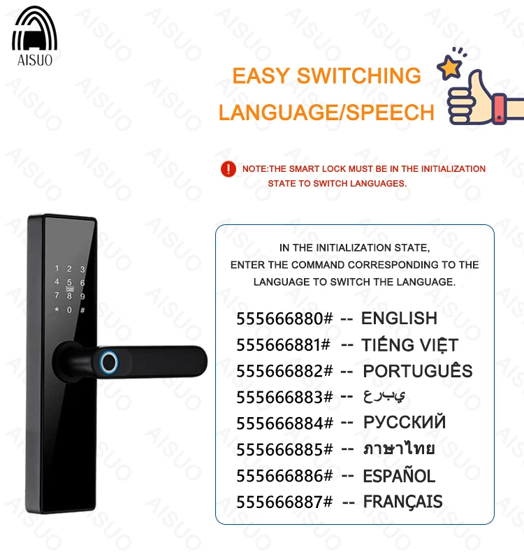 16. Idioma/voz do sistema: português/russo/espanhol/inglês/árabe/francês/tailandês/vietnamita (o sistema de fechadura da porta pode desligar a voz do sistema)