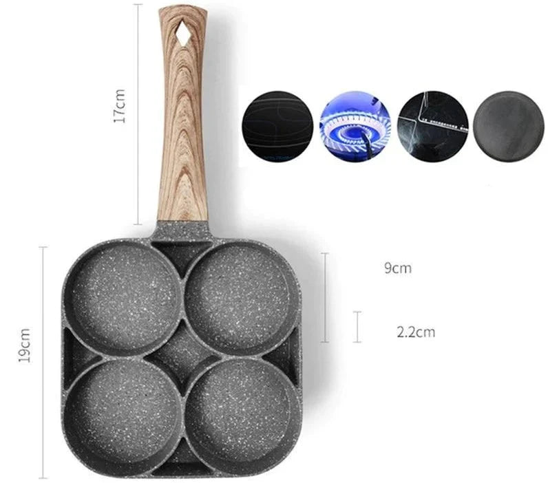 Você pode fritar quatro ovos ou hambúrgueres com diferentes sabores ao mesmo tempo ou fritar quatro alimentos diferentes. Esta é eficiente em energia e atende às necessidades diárias do café da manhã das famílias.