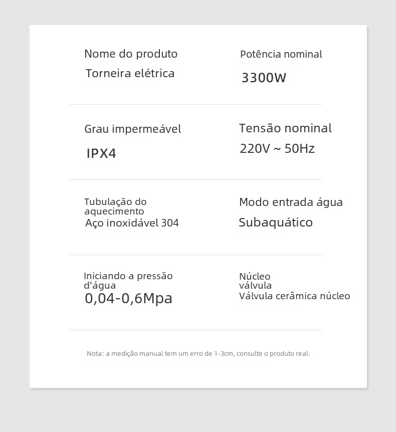 aquecimento rápido:Com a sua funcionalidade de aquecimento rápido, esta torneira oferece uma experiência de uso prática e eficiente.